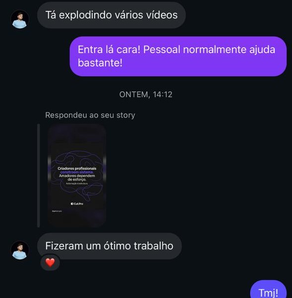 "O CutPro agilizou muito minha vida, em vez de ficar horas editando, consigo fazer de forma muito mais rápida pelo site e ainda me ajuda com template e legendas. Recomendo! @meuscortes"