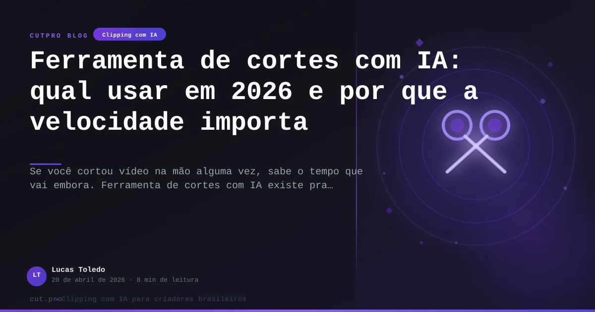 - Ferramenta de cortes com IA: qual usar em 2026 — guia direto sobre velocidade, precisão e o mercado brasileiro.