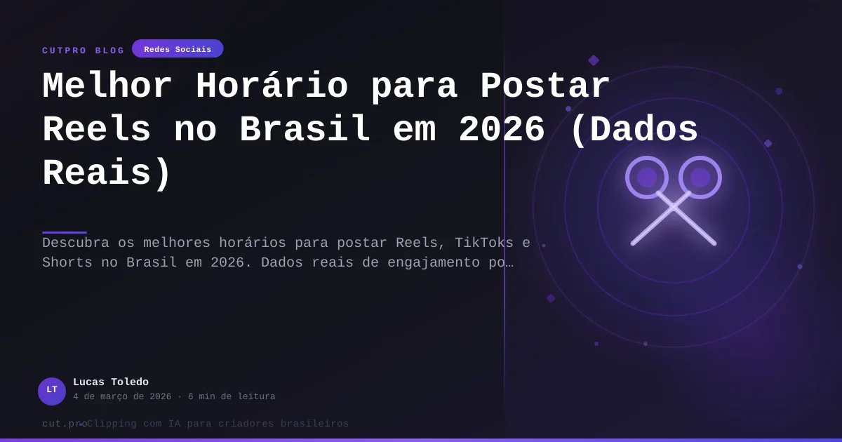 - Melhor horário pra postar Reels no Brasil em 2026 — dados reais por dia, nicho e plataforma.