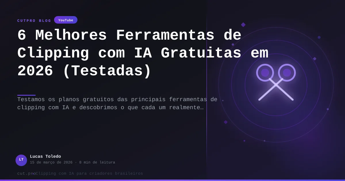Testamos os planos gratuitos de 6 ferramentas de clipping com IA em 2026 para descobrir o que cada um realmente oferece — e onde estão as letras miúdas. Se você produz conteúdo em português, a conclusão vai ficar clara rapidinho.