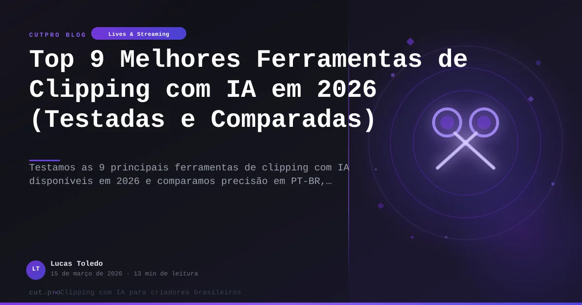 Testamos as 10 principais ferramentas de clipping com IA disponíveis em 2026, avaliando precisão em PT-BR, suporte a plataformas como Twitch e Kick, custo real para o bolso brasileiro e qualidade dos clipes gerados. Este é o resultado.
